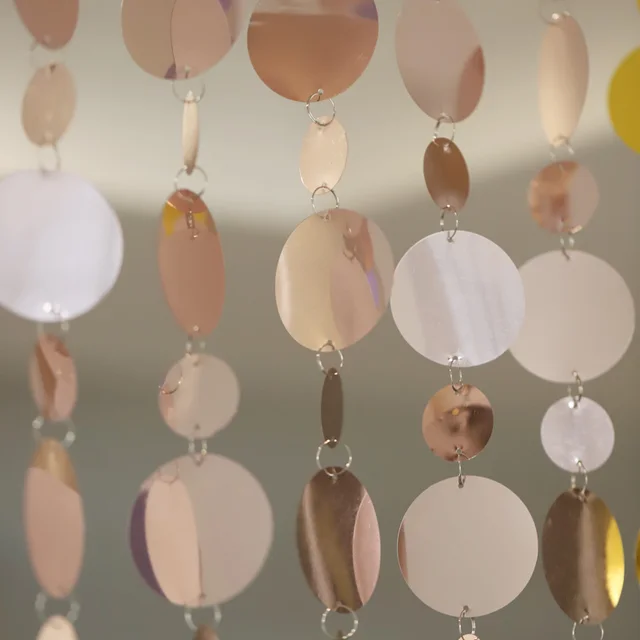 The 10 PCS 50cm Mirror Curtains feature a sleek, mirrored surface that catches and reflects light, creating a dazzling, sparkling effect that enhances the ambiance of any room. Hang them in front of windows to amplify natural light, use them as a backdrop for photo booths, or create an elegant entrance for guests at special events. With their reflective design and versatile size, these mirror curtains are perfect for adding glamour, sophistication, and a modern aesthetic to any occasion.