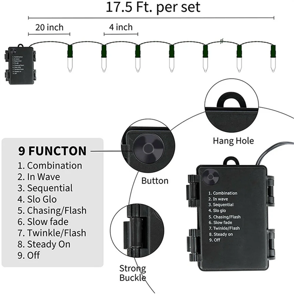 Versatile Lighting Modes The 10M 100 LED Tiny Christmas Lights come with multiple lighting modes to suit any occasion. Choose from combinations, waves, sequential, slow glow, chasing/flash, slow fade, twinkle/flash, and steady on. These modes allow you to create the perfect festive ambiance for your home, whether you prefer a gentle twinkle or a dynamic flash.