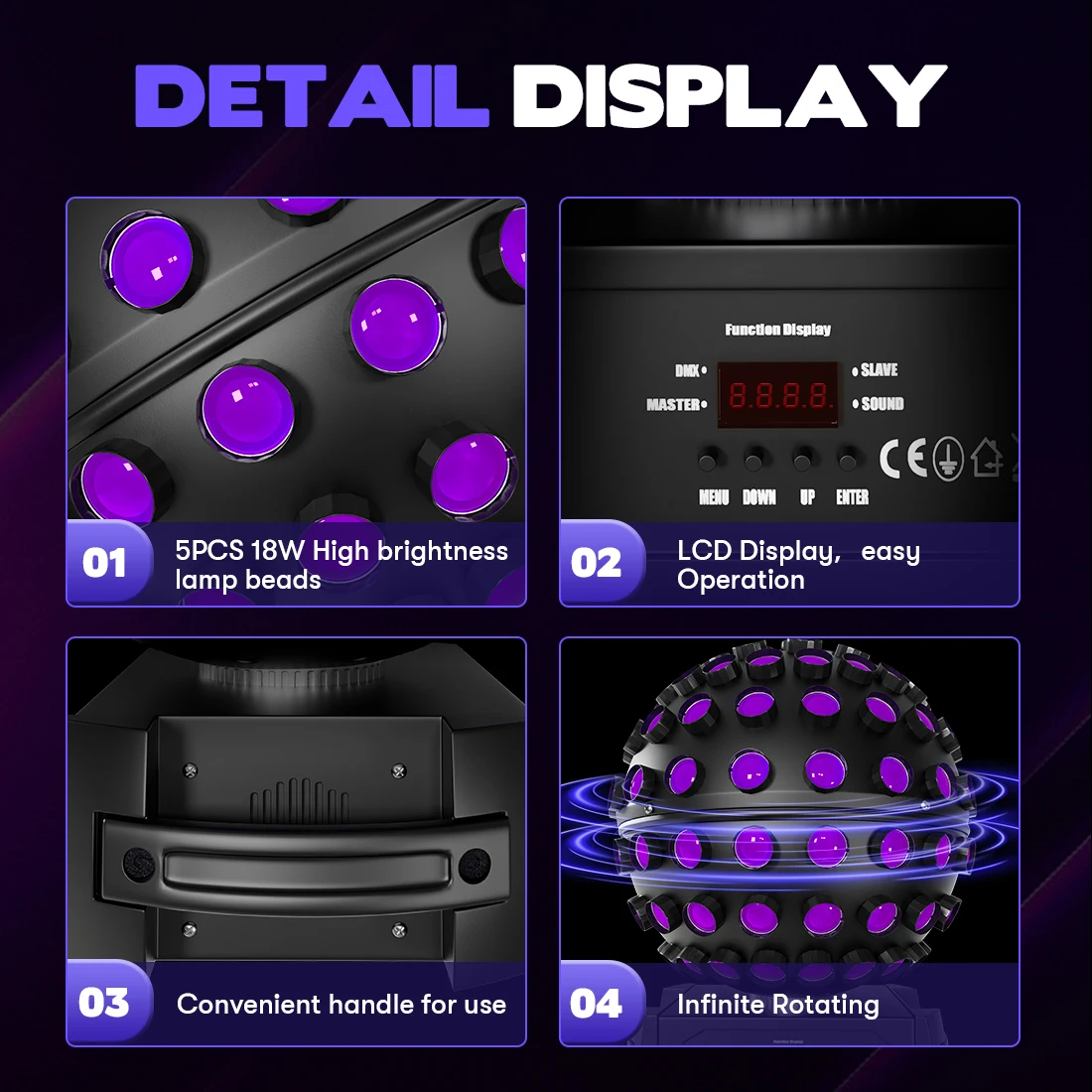 Why Choose the 5x18W Purple Disco Ball Rotating Sphere LED?
