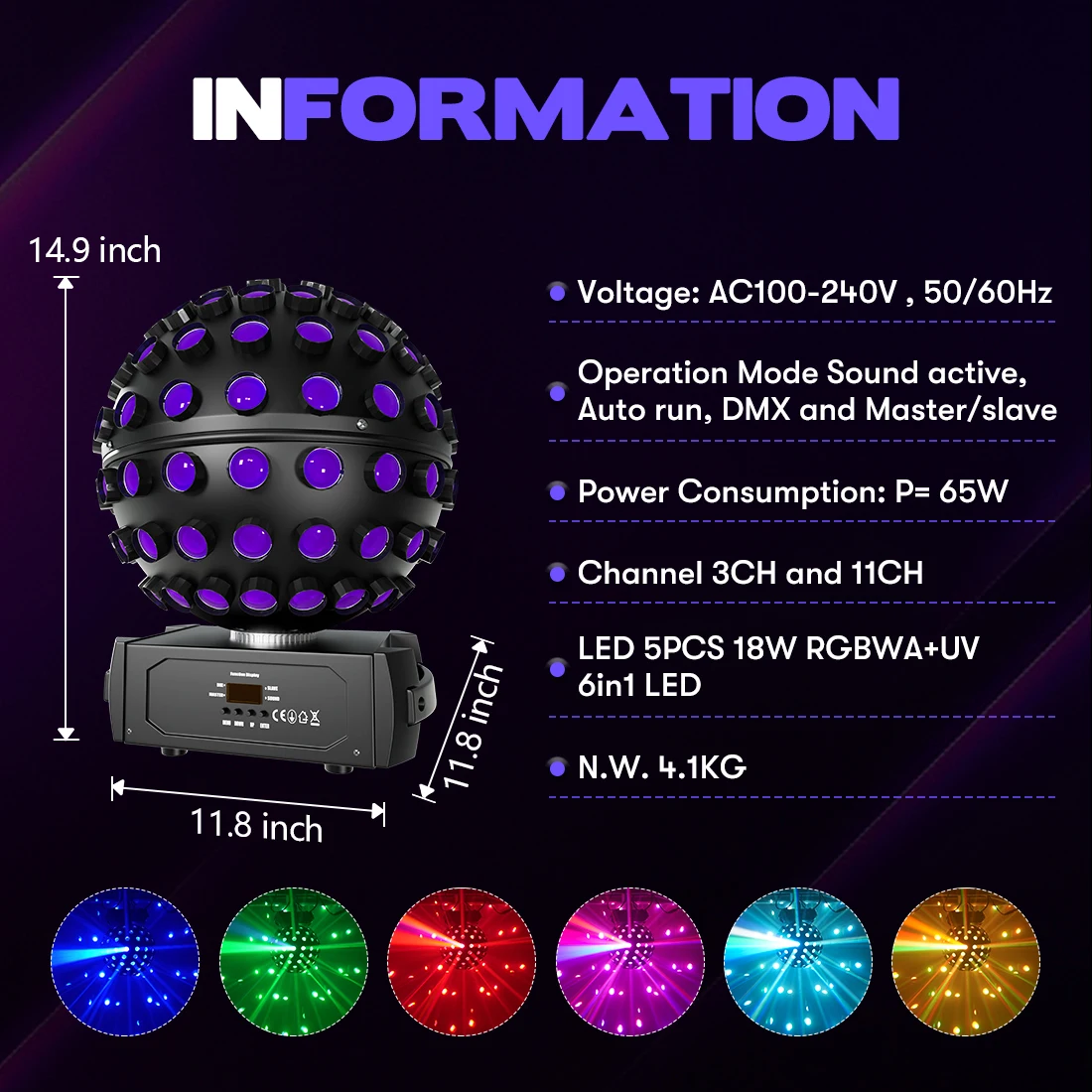 - Product Name:Â 5x18W RGBAW + UV Ball Light