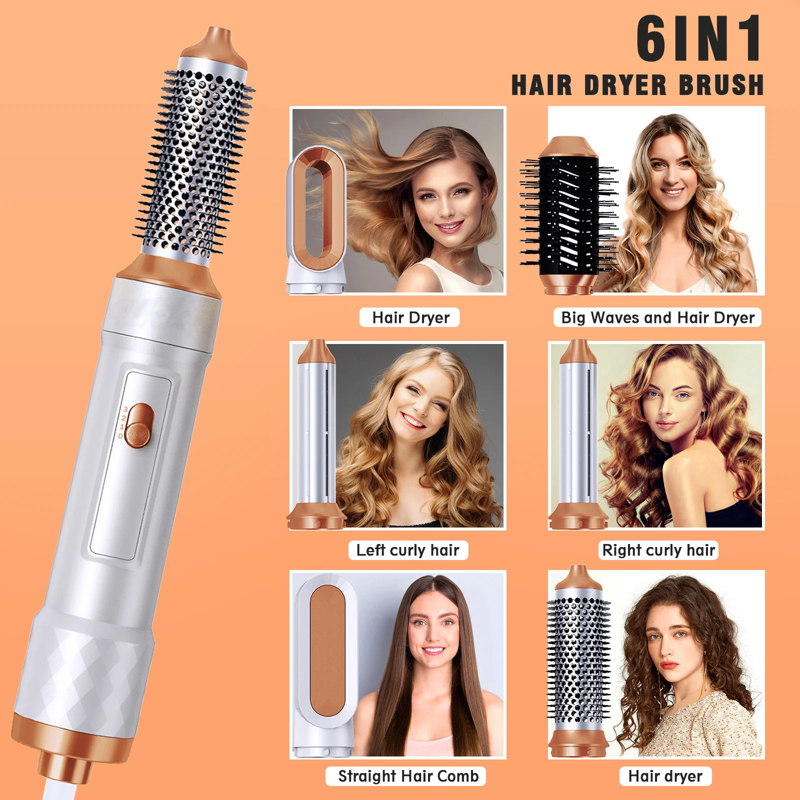 Versatile Styling with Multiple Attachments The 6 In 1 Hair Styler includes six interchangeable attachments, each designed to help you achieve a different hairstyle. The curling iron attachments come in various sizes for creating tight curls, loose waves, and everything in between. The straightening attachment allows for smooth, frizz-free hair, while the volumizing brush adds lift and body. With this one tool, you can switch up your look effortlessly and keep your hair game strong.