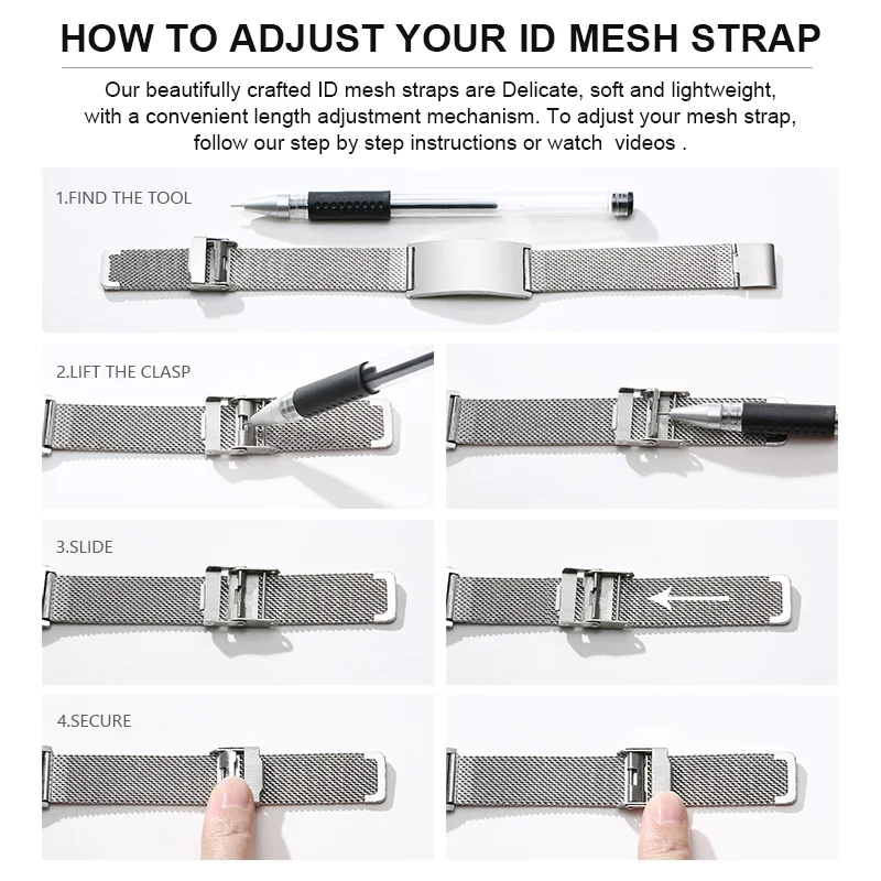 - Unique: mesh bracelet medical alert alert with customzied text