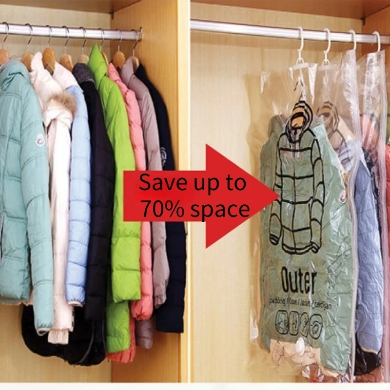 - Space Saving Vacuum Sealing Organizer:Â Hanging Vacuum Storage Bags