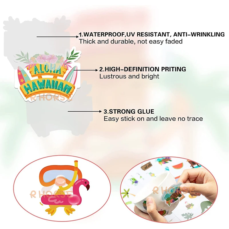 Vibrant Tropical Designs Each Hawaiian Sticker features a vibrant and colorful design inspired by the lush landscapes and beautiful beaches of Hawaii. From hibiscus flowers and palm trees to surfboards and sea turtles, these stickers capture the essence of island life.