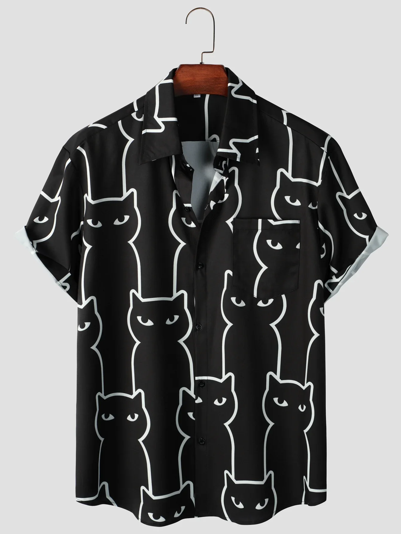- Distinctive Design for Cat Lovers: With a whimsical, cat-themed pattern, this shirt is perfect for cat enthusiasts or anyone who enjoys quirky, expressive fashion.