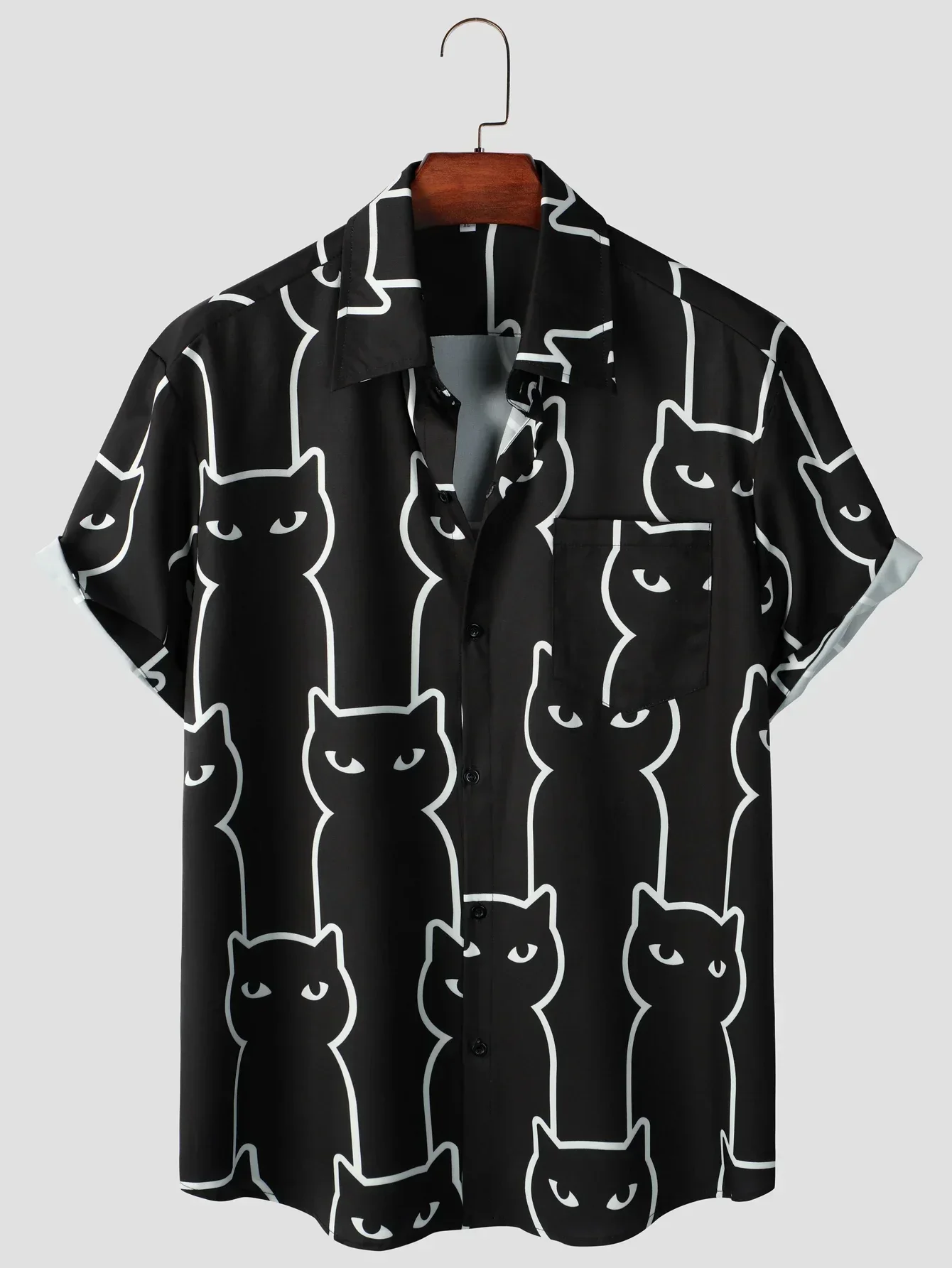 The cat-themed graphics add a touch of humor and fun, making this shirt a standout piece in your wardrobe.