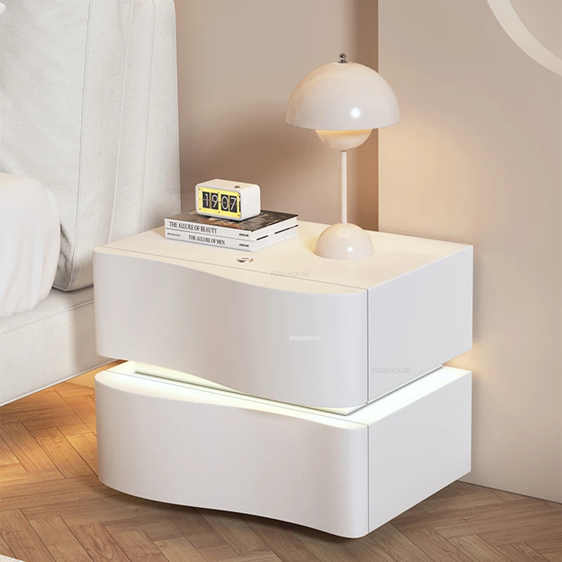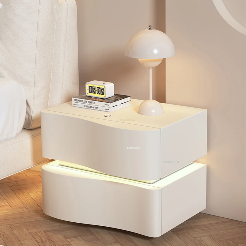 Nordic Cream Style Nightstand with Light