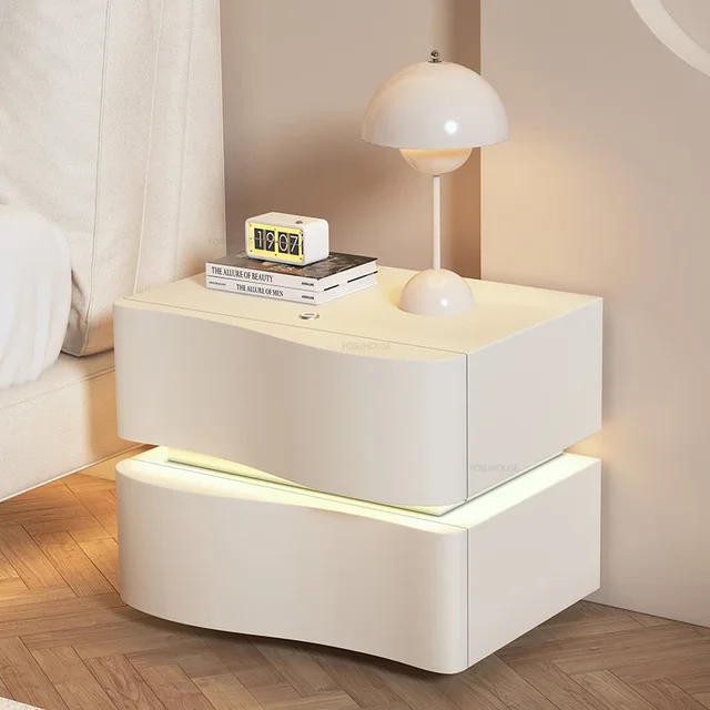 Elevate Your Bedroom Decor with the Nordic Cream Style Nightstand with Light