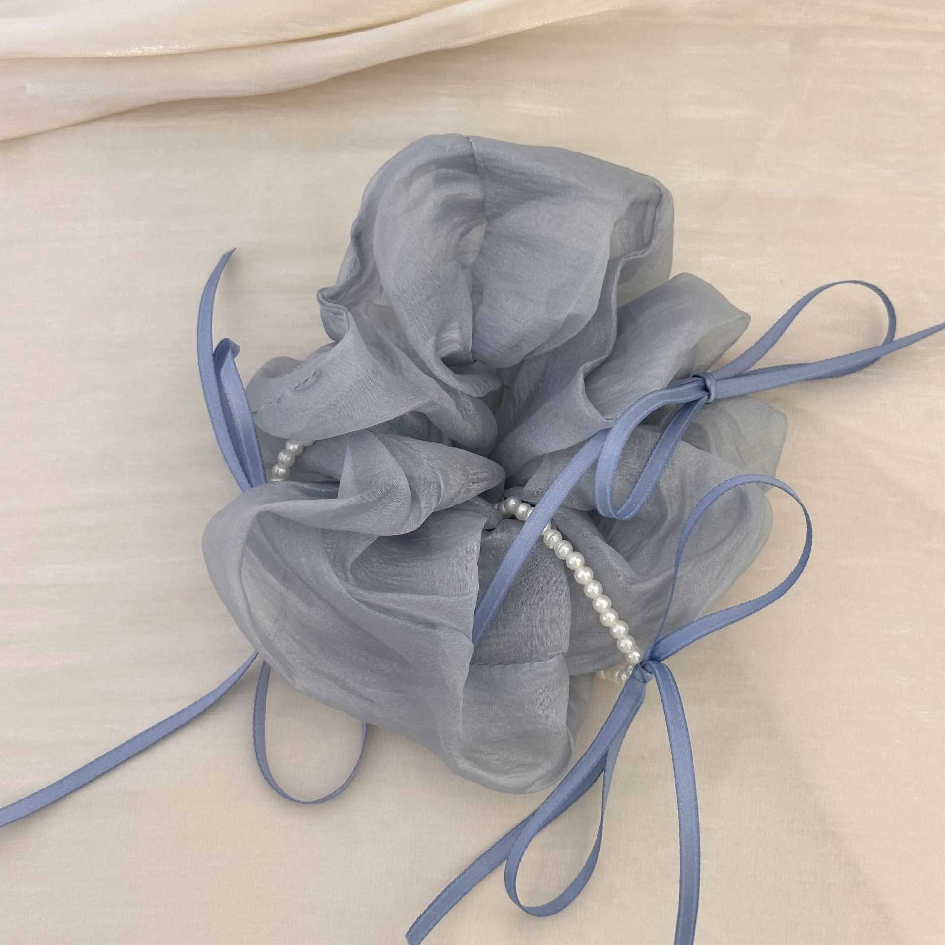 Spot Clean: Gently clean the scrunchie with a damp cloth to remove any dirt or residue, especially on the bow and pearls. Avoid Stretching: Be careful not to overstretch the elastic to maintain its durability and shape. Store Properly: Store the scrunchie in a dry place away from sharp objects to protect the bow and pearls from damage.
