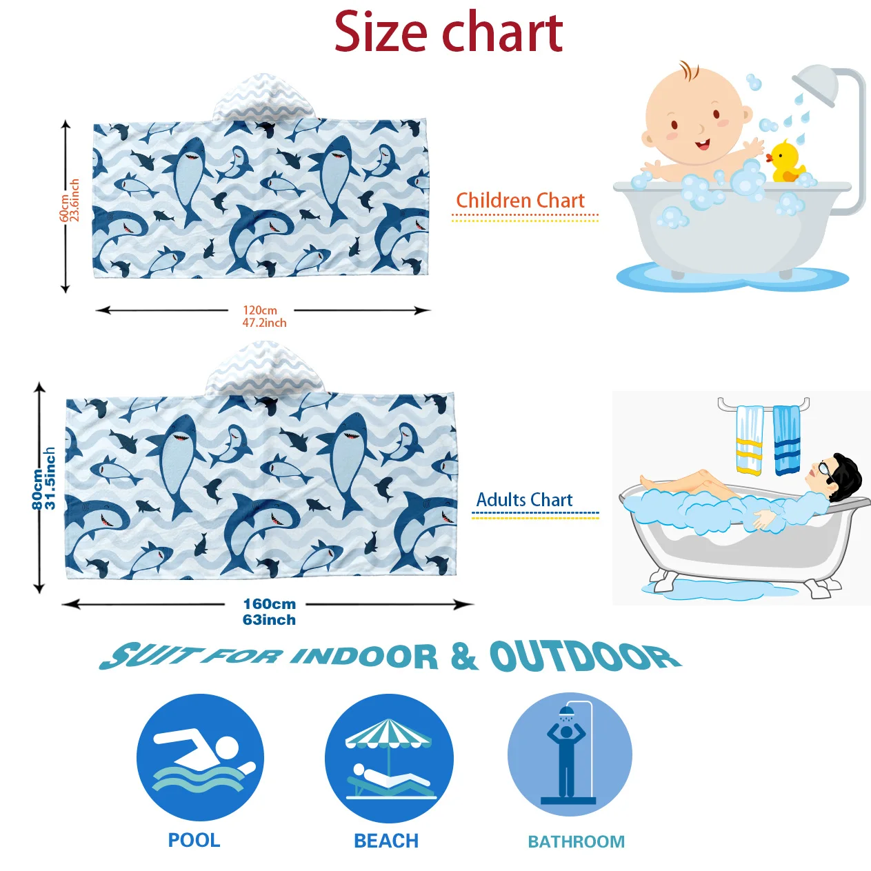 Generous Size The Shark Towel is generously sized to fit children of various ages. Its ample size allows for full coverage, ensuring kids stay warm and dry.