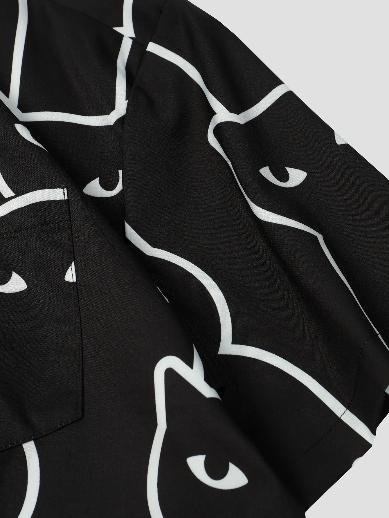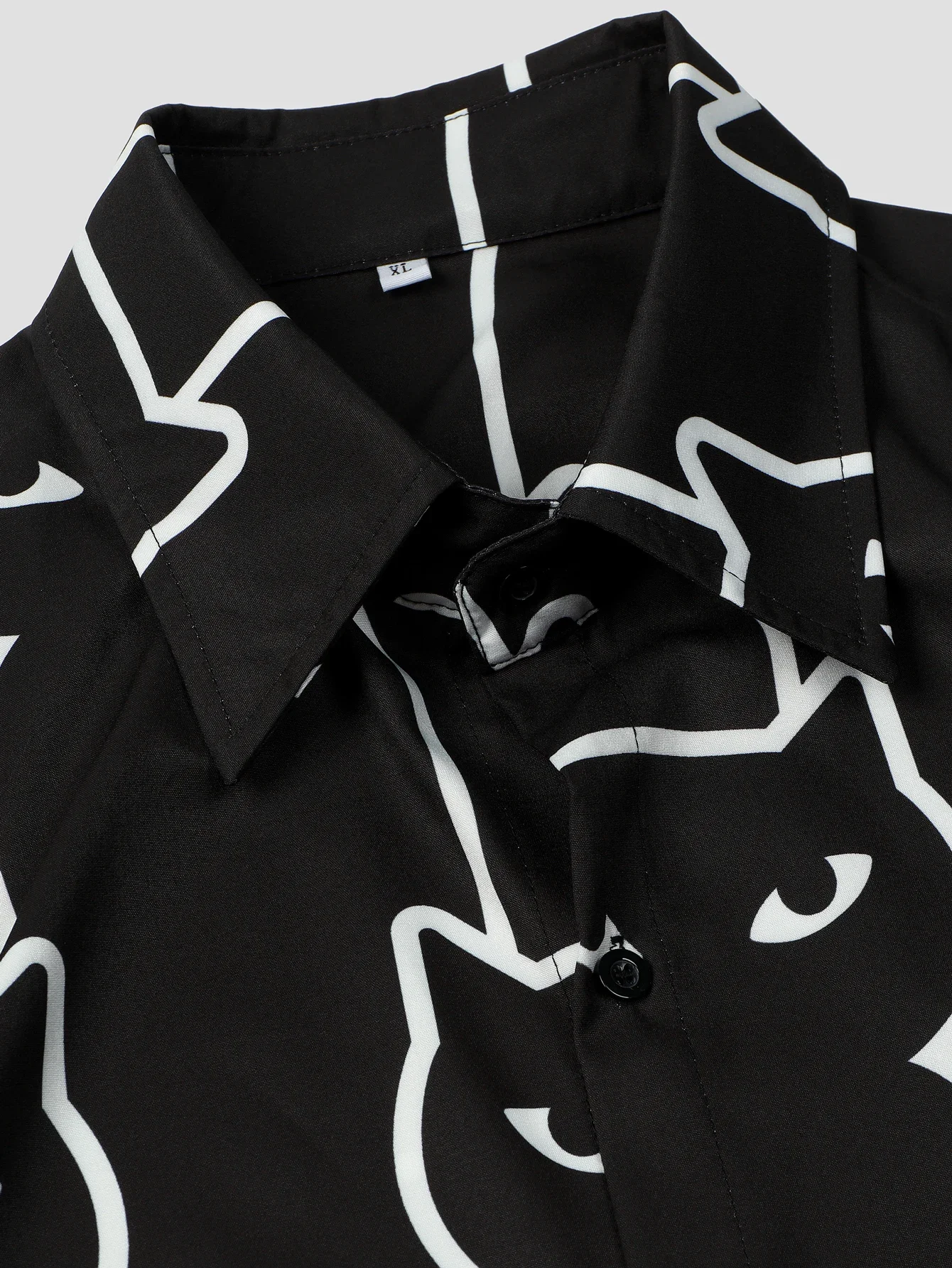 Summer Casual Aloha Cat Button-Up Shirt for Men